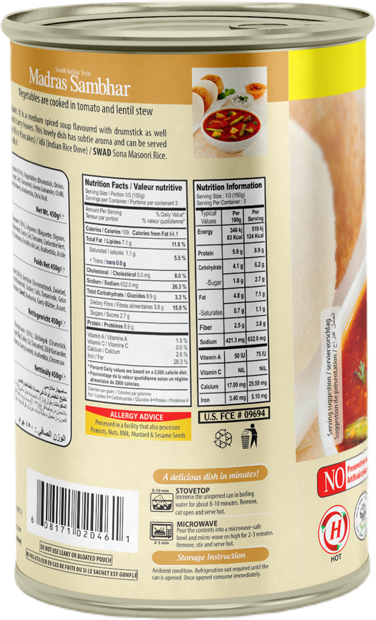 SWAD Ready to Eat Madras Sambhar 450g